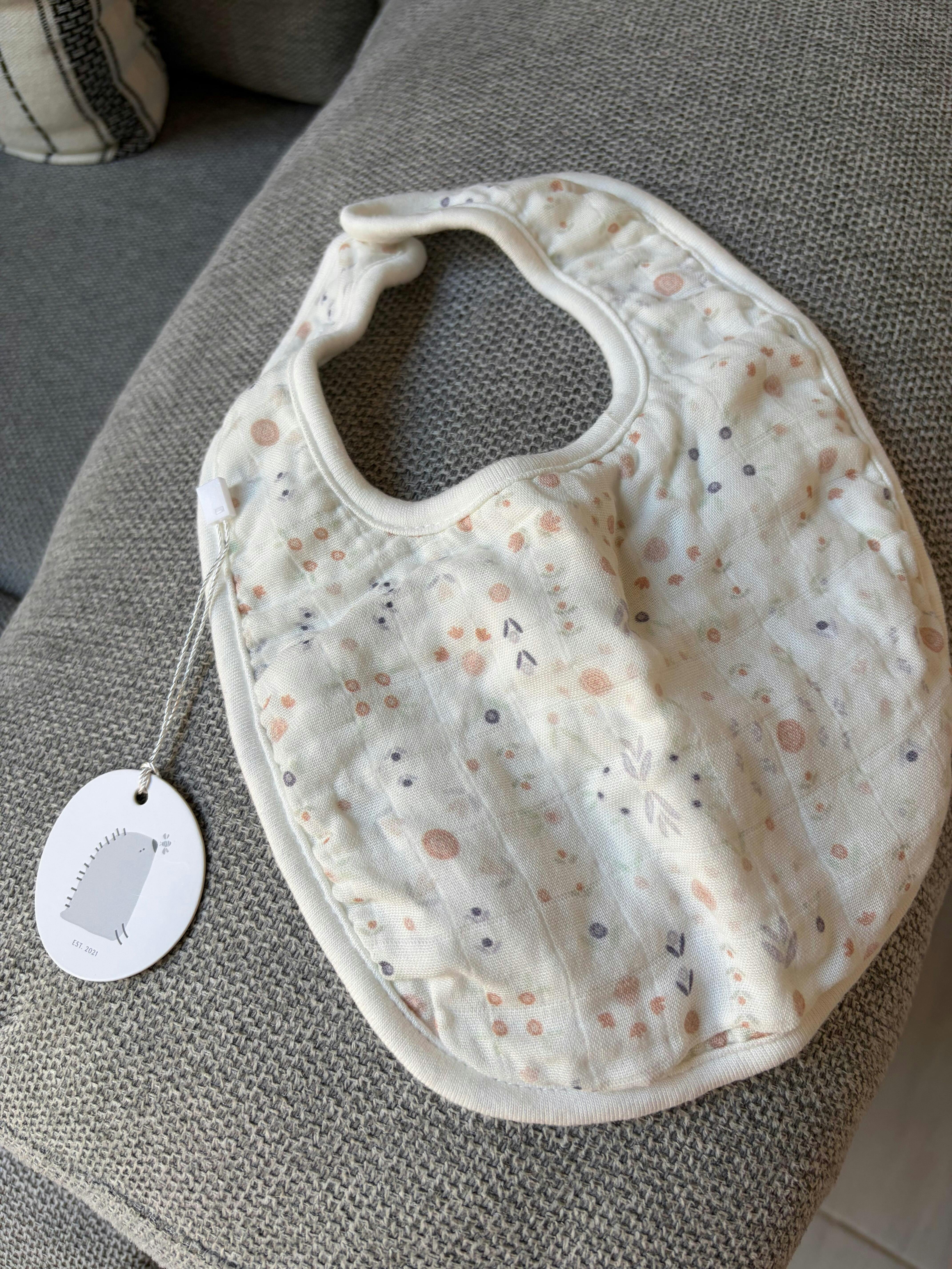 Babero hecho de nuestra tela de muselina de algodón y bambú, estos baberos suaves son perfectos para absorber la saliva durante la dentición, manteniendo a tu bebé seco y cómodo sin irritar su piel.